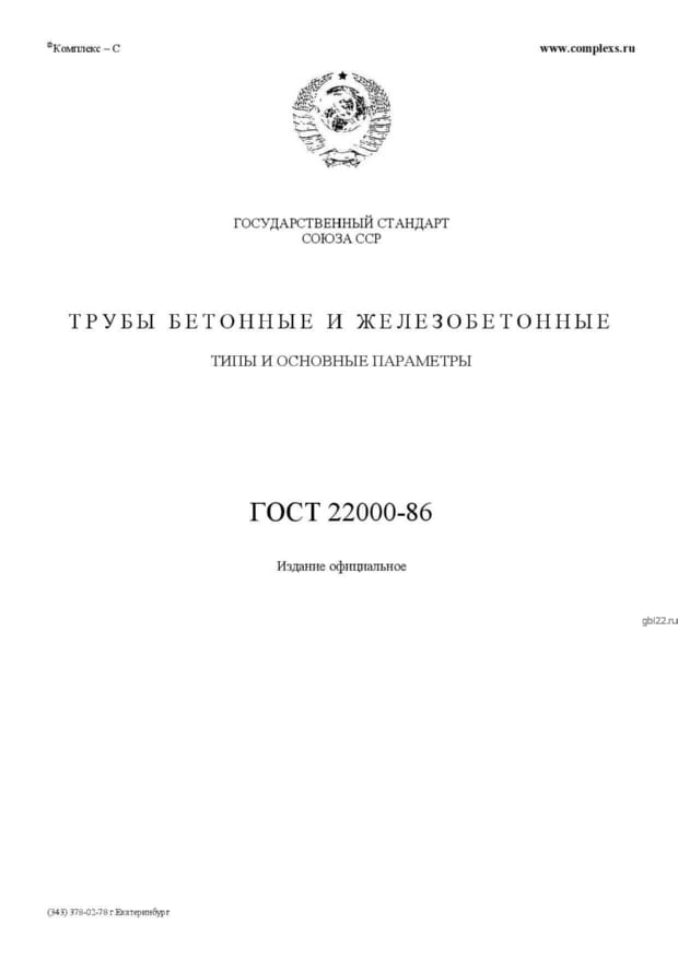 | Название стандарта | Трубы бетонные и железобетонные. Типы и основные параметры. |