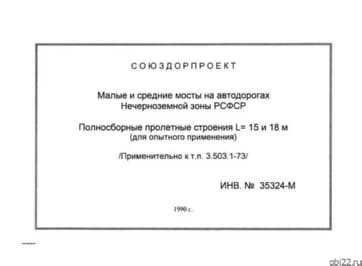 | Название стандарта | Малые и средние мосты на автодорогах Нечерноземной зоны РСФСР. Полносборные пролетные строения L=15 и 18 м (для опытного применения). |