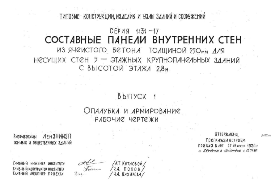Серия 1.131-17: составные панели из ячеистого бетона для несущих стен Составные панели внутренних стен серии 1.131-17 предназначены для 5-этажных крупнопанельных зданий с высотой этажа 2,8 м. Изготовлены из ячеистого бетона толщиной 250 мм, обеспечивая прочность, легкость и высокие теплоизоляционные свойства. Преимущества: