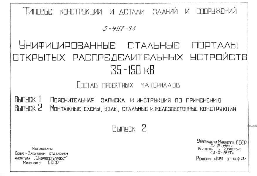 Серия 3.407-98: Унифицированные стальные порталы ОРУ 35–150 кВ