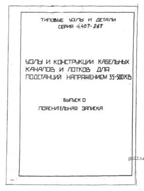 | Название стандарта | Узлы и конструкции кабельных каналов и лотков для подстанций напряжением 35 - 500 кВ. |