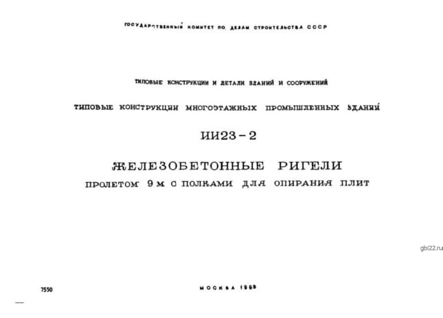 | Название стандарта | Типовые конструкции многоэтажных промышленных зданий. Железобетонные ригели пролетом 9 м с полками для опирания плит. |