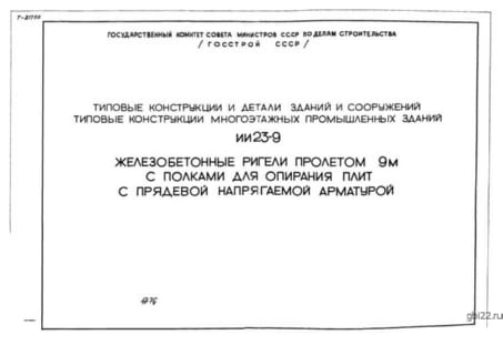 Серия ИИ 23-9: железобетонные ригели пролетом 9 м с полками под плиты Железобетонные ригели серии ИИ 23-9 предназначены для каркасных зданий с пролетом 9 метров. Конструкция включает полки для опирания плит, обеспечивая надежное соединение элементов. Применяется прядевая напрягаемая арматура, повышающая прочность и устойчивость к нагрузкам. Преимущества:
