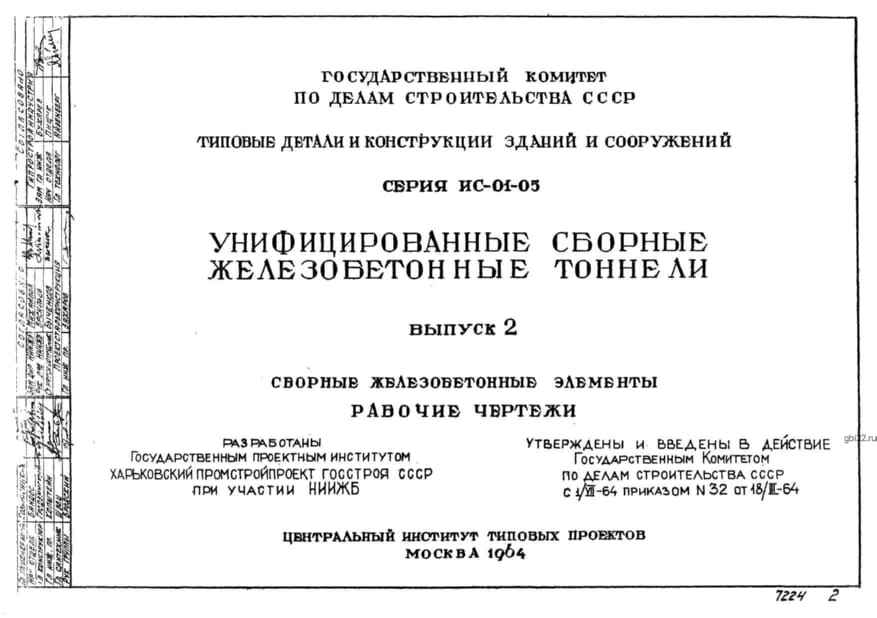 | Название стандарта | Унифицированные сборные железобетонные тоннели. |